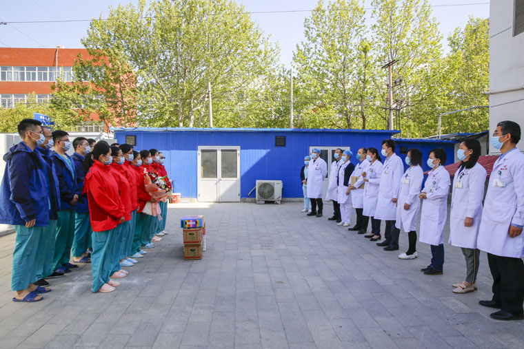 近日,我院党委副书记李晓玲和副院长耿翠芝、刘运江、东院副院长张爱莉带领相关职能部门负责人代表医院党委分别在本部和东院看望慰问了第四批进驻发热门诊的医护人员,对他们积极主动、顾全大局、勇挑重担的精神表示敬意与感谢。