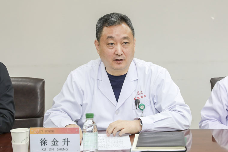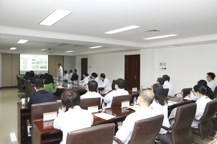 王校长一行实地参观考察了我院本部预检分诊、门诊大厅、胸二科、肾内科、急诊科、24小时自助服务系统、教学楼、科研中心、肿瘤研究所、发展成就展览等地,东院区急诊科、发热门诊、预检分诊、门诊大厅、乳腺中心、血液内科、教学楼、科研中心、河北省癌症中心主楼项目工地等地。在座谈中,我院党委书记单保恩以PPT的形式就医院整体工作进行汇报,党委副书记、院长徐金升主持会议,并与其他院领导就各自分管工作进行汇报,专家代表就科室发展等进行交流。