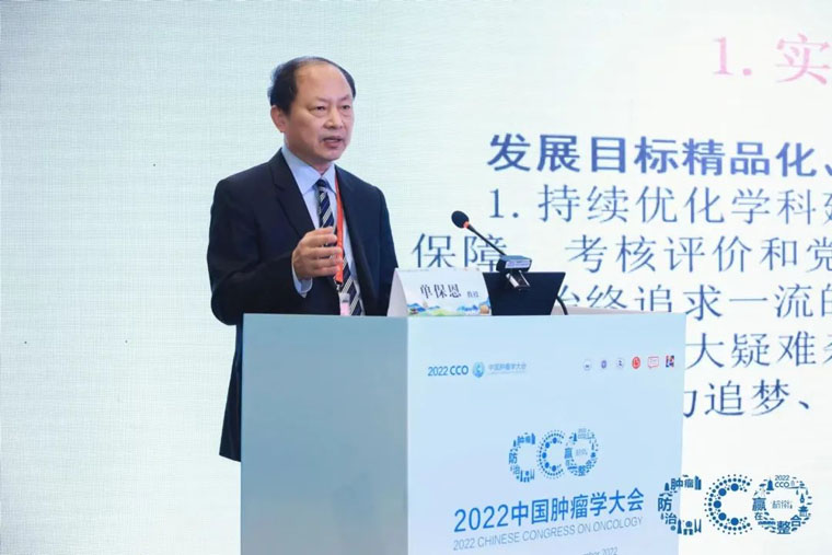 我院单保恩书记在大会中作了《学科建设推动医院高质量发展》的报告,他指出,学科建设是医院高质量发展的重要支撑条件,要形成以学科、人才、信息化建设为支撑,不断促进公立医院医疗服务能力和管理能力再上新台阶。同时,作为肿瘤生物治疗和抗癌药物专业委员会副主任委员,单保恩书记以《后免疫检查点抑制剂肿瘤治疗现状与进展》为题进行学术讲座,对肿瘤免疫微环境、免疫治疗策略、免疫治疗标志物等免疫治疗热点问题进行阐述,并在多个分会场担任讨论嘉宾;外三科李勇教授作为中国抗癌协会胃肠间质瘤专委会主委,担任分会场主席并作学术报告;乳腺中心耿翠芝教授在临床研究管理学分会主持“研究者发起的临床研究的管理经验”环节;呼吸内科丁翠敏教授、胸外科刘俊峰教授、妇科康山教授、肿瘤内科姜达教授、中医科李晶教授、消化内科李胜棉教授、放疗科王军教授、祝淑钗教授、儿科江莲教授、核医学科赵新明教授、病理科刘月平教授等多位专家就肿瘤预防、筛查、诊断、治疗及康复等临床与研究热点领域的新理念、新技术、新方法,开展了广泛交流与研讨。我院病理科获肿瘤病理专委会优秀组稿单位,其中4篇论文分获肿瘤标志专委会青年优秀论文一等奖和三等奖。