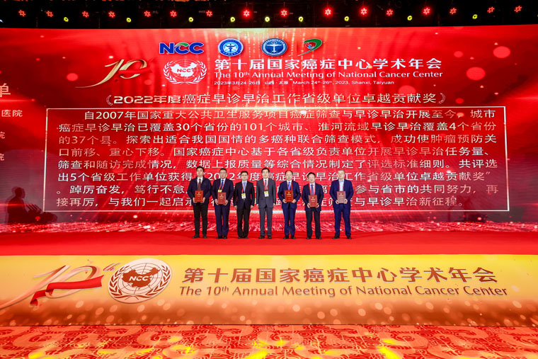 习近平总书记在党的二十大报告中强调,高质量发展是全面建设社会主义现代化国家的首要任务。3月24-26日,为助力我国癌症防治研究事业的高质量发展,推动健康中国行动和国家癌症防治行动目标的实现,以“推动高质量癌症防治助力健康中国行动”为主题的“第十届国家癌症中心学术年会”在山西太原召开,会上对2022年度全国癌症防治工作进行了总结表彰,我院荣获“2022年度肿瘤登记工作省级单位杰出贡献奖”“2022年度癌症早诊早治工作省级单位卓越贡献奖”等多个奖项,彰显了我省肿瘤防治工作达到了新高度。