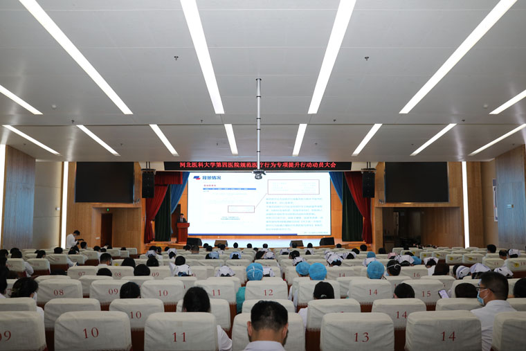 4月19日下午,我院在新医技病房楼报告厅召开了“河北医科大学第四医院规范医疗行为专项提升行动动员大会”。全体院领导、党总支书记、党支部书记、中层干部参加大会。