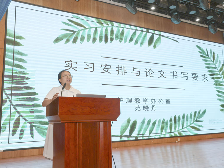 护理教学办公室副主任范晓丹和班主任吴景梅、李慧娟分别就实习安排、毕业论文撰写、学生管理、实验室管理等内容和要求进行详细说明。