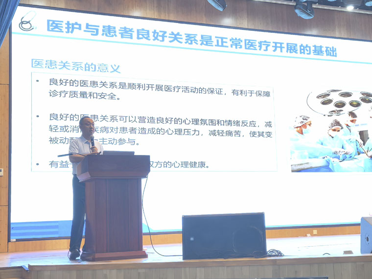 感染管理科主任杨兴肖为同学们进行了院感知识培训,通过案例深入浅出地讲解了如何做好标准预防和职业防护。她重点讲解了职业暴露后的紧急处理及预防措施,帮助大家进一步了解院感知识的同时,不断强化在工作中保护自己、保护患者的意识。