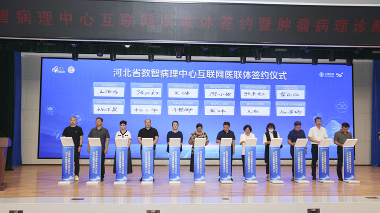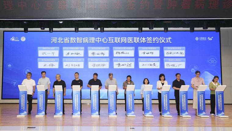 7月11日,河北省数智病理中心互联网医联体签约暨肿瘤病理诊断大模型发布仪式在我院东院区举行。省卫生健康委、省/市医疗保障局、河北医科大学、河北移动等领导,全体院领导,我院职工代表及多家主流媒体,共同见证河北病理领域数智化发展的重要里程碑。