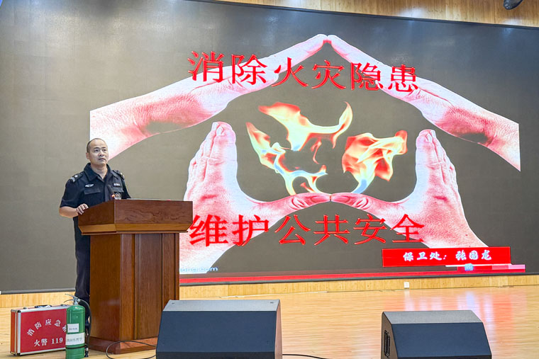 在日常生活安全保障方面,东院保卫处吕冬霜与本部保卫处张国龙就宿舍安全用电知识、火灾预防措施及应急处置流程等进行培训,现场演示了灭火器等消防设施的使用方法。同学们也进行了实际操作。