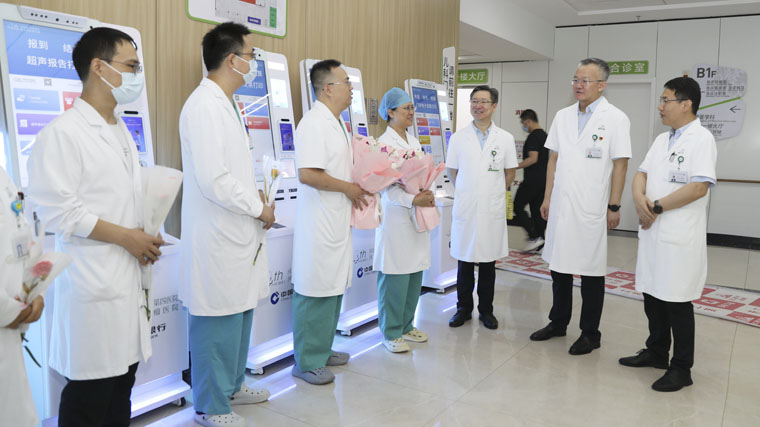 当日上午,全体院领导带领相关职能部门负责人,分批次在两院区亲切慰问了仍然奋斗在一线的老专家、老教授和临床医技科室医务工作者,为他们送上鲜花和掌声,并致以节日的问候和诚挚的祝福。