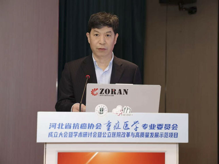 10月26日,河北省抗癌协会肿瘤重症医学专业委员会成立会议在石家庄举行。协会青年理事会常务副理事长、我院常务副院长何宏涛出席会议并致辞。协会副理事长兼秘书长、我院刘运江教授主持选举环节,协会组织部长、我院何明教授主持会议,我院重症医学科主任胡振杰教授当选为首届主任委员。我院重症医学科陈玉红副教授、河北医科大学第二医院刘雅教授、河北省人民医院申丽旻教授、河北大学附属医院于占彪教授当选为副主任委员。会议同期举办“河北省抗癌协会肿瘤重症医学专业委员会学术研讨会暨公立医院改革与高质量发展示范项目”。